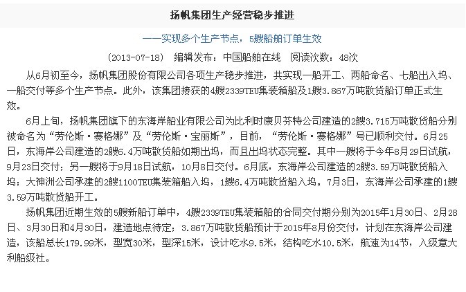 中國船舶在線:揚(yáng)帆集團(tuán)生產(chǎn)經(jīng)營穩(wěn)步推進(jìn)